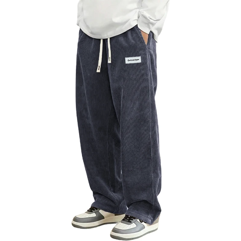 New Mens Corduroy Casual Pants Fashion Loose Fit Baggy Pants Straight Sweatpants Elastic Waist Drawstring Outdoor Streetwear